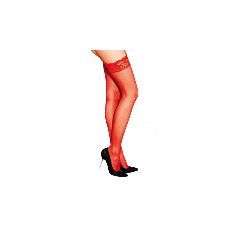 Bas classiques en voile rouge, à fixer sur un porte-jarretelles.