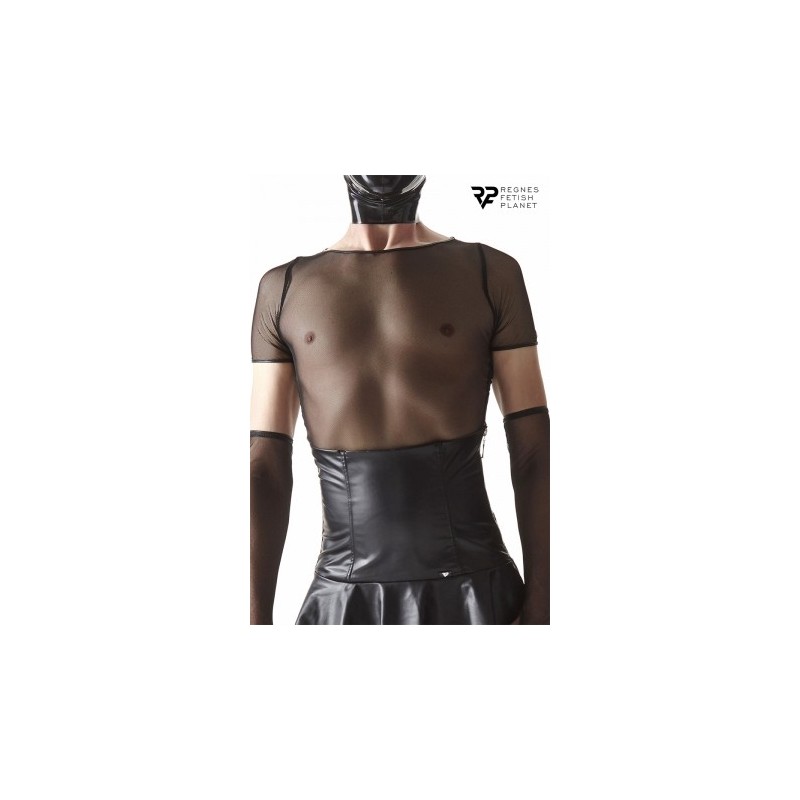 T-shirt noir en résille élastique qui s'adapte parfaitement à la morphologie de chacun. La marque Européenne Regnes Fetish Planet a créé une collection dédiée aux hommes voulant explorer de nouvelles visions d'eux-mêmes, elle a tout naturellement pensé ce modèle classique pour compléter ses autres tenues. Les bords du col et des manches de ce t-shirt sexy sont doublés d'un ruban en tissu wetlook qui souligne son style. Caractéristiques : - Collection : Cross Dresser - Composition : 95% polyester, 5% élasthanne - Tissu : Résille fine et élastique - Correspondances de tailles : S : Poitrine : 93-98cm, taille : 78-82cm, hanches : 88-92cm M : Poitrine : 98-102cm, taille : 83-87cm, hanches : 93-97cm L : Poitrine : 103-107cm, taille : 98-102cm, hanches : 108-112cm - Fabriqué en Europe - T-shirt vendu seul - Marque : Regnes Fetish Planet