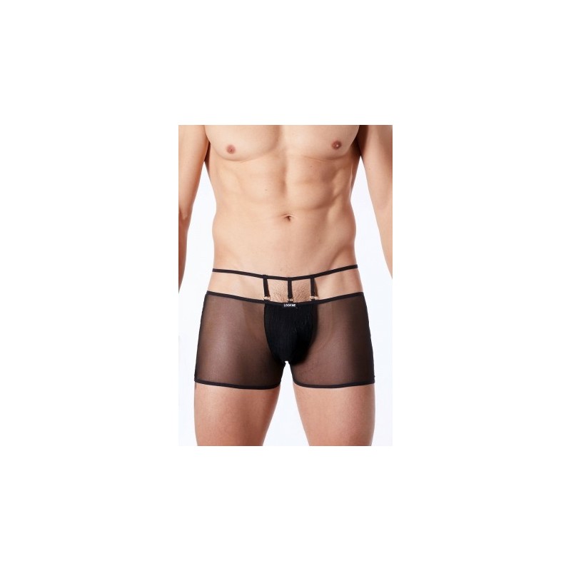 Ce boxer sexy homme est original et élégant avec sa coquille suspendue par des lanières fixées à des anneaux, et le contraste de la fine résille transparente avec la coquille opaque en tissus strié aux reflets brillants. L'arrière totalement fait de résille met parfaitement en valeur les fesses. Les lanières apportent une touche sophistiquée qui accentue le pouvoir d'attraction de ce modèle. Un boxer homme purement érotique. Marque : LookMe. Composition : 92% polyester, 8% élasthanne Correspondances de tailles : Small : taille 1 ou 38 Medium : taille 2 ou 40. Large : taille 3 ou 42 X Large : taille 4 ou 44.