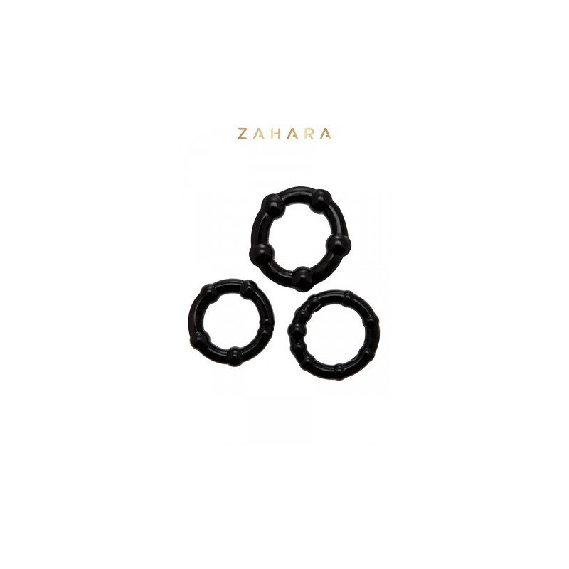 Ensemble de 3 anneaux de pénis noirs en TPR, de 3 à 3,5 cm de diamètre extensible, pour renforcer votre érection et faire durer le plaisir, de la marque Zahara.