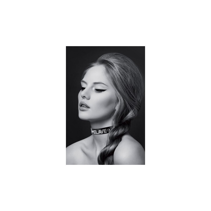 Avec le mot « SLAVE » en bijou strass en relief sur le devant, ce collier noir, ras de cou, de la marque Bijoux pour toi, affichera clairement votre côté soumise et coquine.