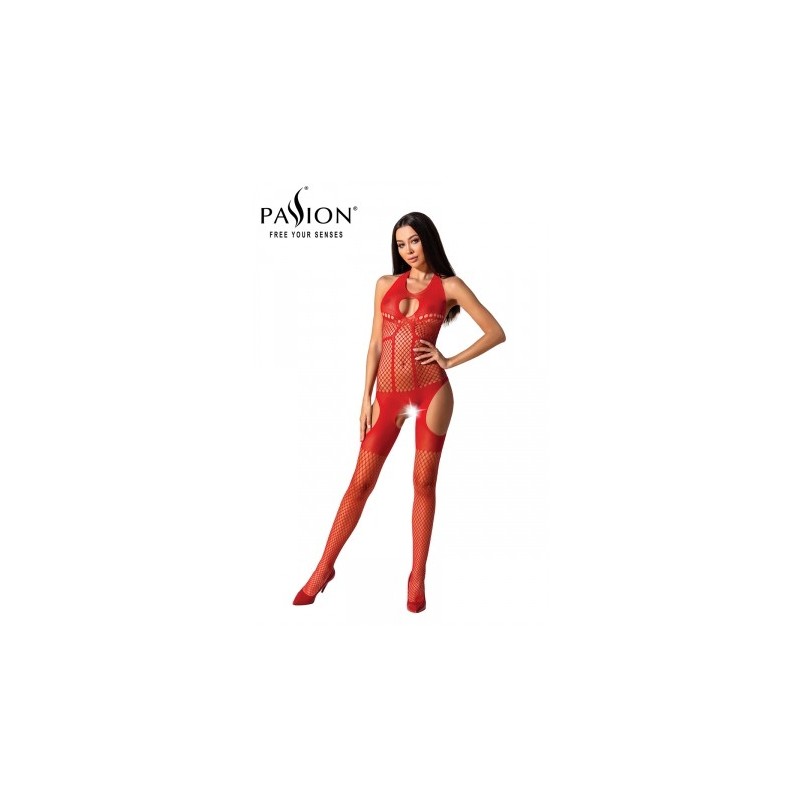 Enflammez votre partenaire dans cette combinaison ouverte rouge de type bodystocking résille de la marque Passion. Très sexy, cette combinaison près du corps embrasse les formes, tout en dissimulant une partie de votre poitrine pour plus de mystère. Au niveau du ventre, la résille filet à larges mailles souligne la silhouette. Le décolleté en oeil attire le regard sur les seins, et le dos nu à l'arrière de la tenue apporte un détail sensuel de plus à cette combinaison très sexy. Au niveau des hanches, le tissu foncé opaque et une ouverture sur le côté des fesses donnent une impression de porte-jarretelles. Une large ouverture érotique au niveau de l'entre-jambe dévoile votre intimité et vos fesses. Cette combinaison en tissu extensible mettra en valeur toutes les morphologies (taille unique). Caractéristiques : Combinaison sexy Lingerie de fabrication 100% européenne Composition : 80% polyamide, 20% élasthanne Couleur : rouge Correspondances de tailles : La taille unique convient de small à Xlarge, ou de 36 à 42 Fabriqué en Europe Marque : Passion