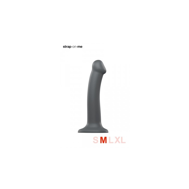 Gode ventouse de la marque Strap-On-Me, taille M, en silicone mono-densité gris, conçu pour le plaisir anal ou vaginal et compatible avec tout harnais gode-ceinture équipé d'une fixation en anneau.
