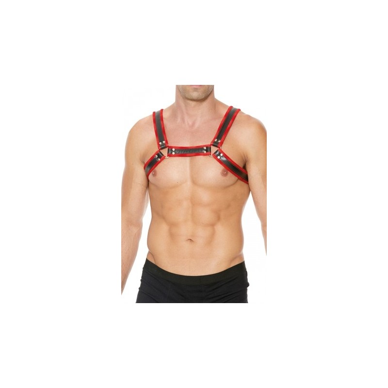 Pour les adeptes de la mode fétichiste, la marque Ouch! a conçu le ''Chest Bulldog Harness'', un magnifique harnais en cuir véritable, rouge et noir, orné de fermetures en acier inoxydable.
